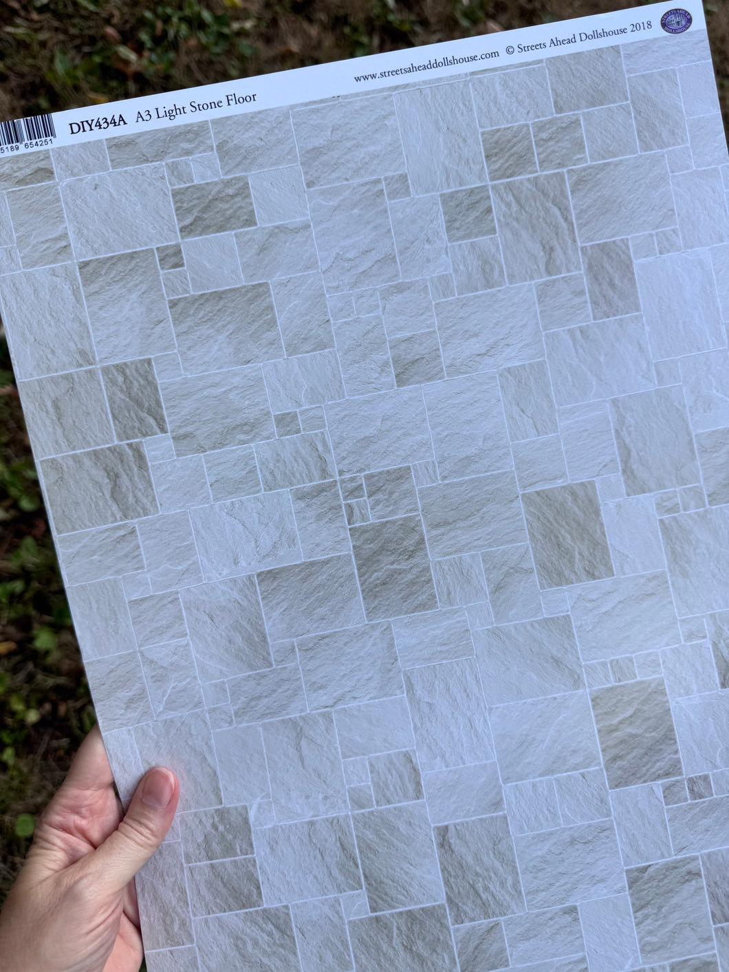 „Light Stone“-Bodenbelag – würde in der Küche, im Badezimmer oder im Flur großartig aussehen. Perfekt für jede moderne Umgebung. A3-Blatt aus Hochglanzkarton – Gesamtgröße 16,5 x 11,7 Zoll (42 x 29,7 cm).